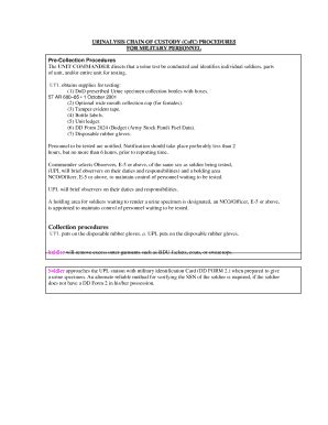 Army Urinalysis Procedures. Removes excess outer garments such as bdu jackets, coats, or sweat tops. This regulation establishes policy for physicians, toxicologists, nurse practitioners, and physician.